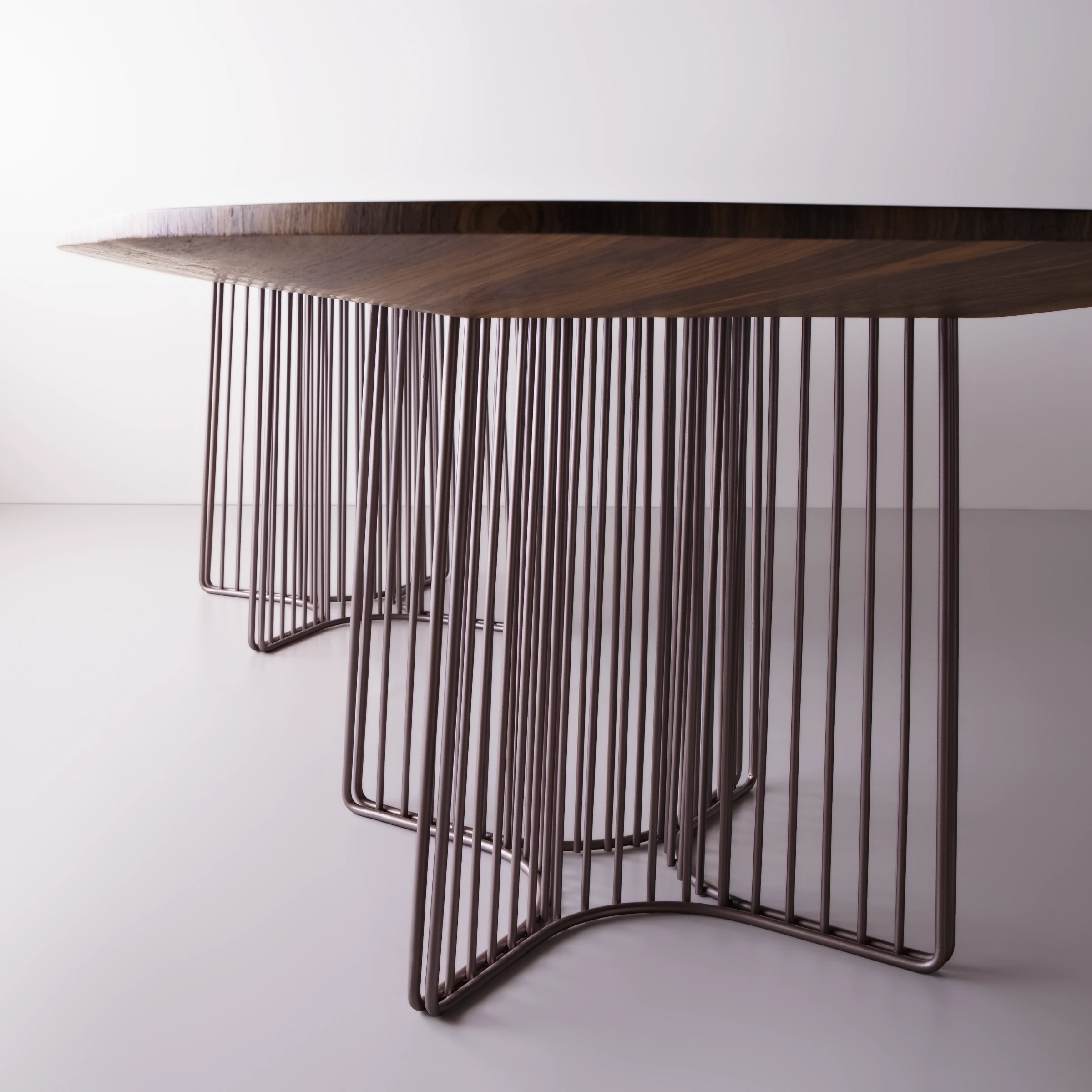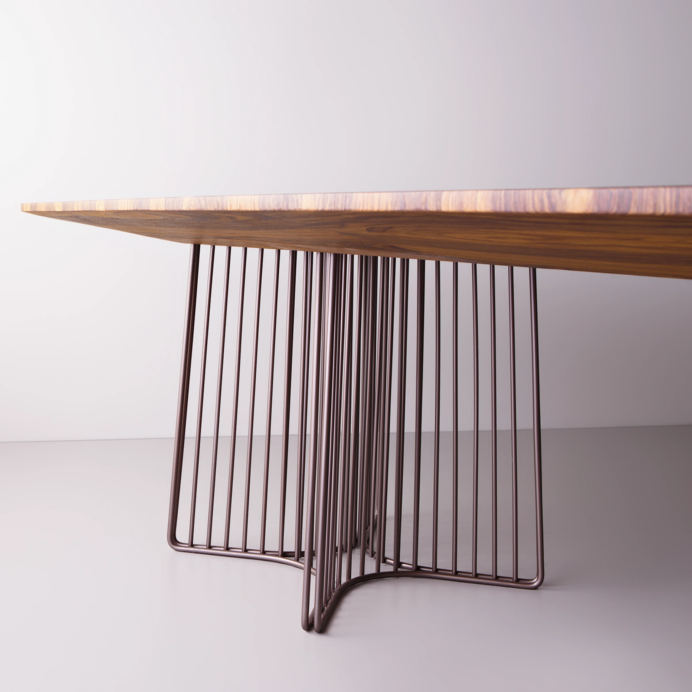 Madera con detalle en metal pintado.